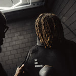 A black hoodie with contrasting white dotted accents, symbolizing the Yin Yang of creativity — balance, contrast and strength. A modern relaxed fit with soft structured fabric, reimagining the collection’s empty spaces into a visual expression of duality.